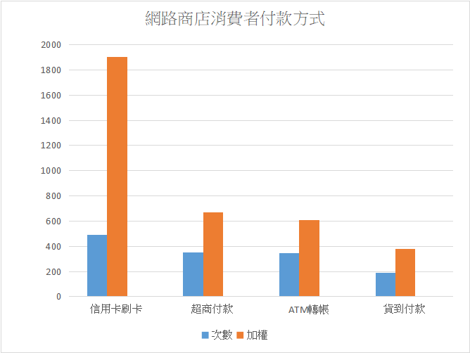 與去年的網路調查交叉比對,可以得到消費者網路購物使用付款方式前三名為: